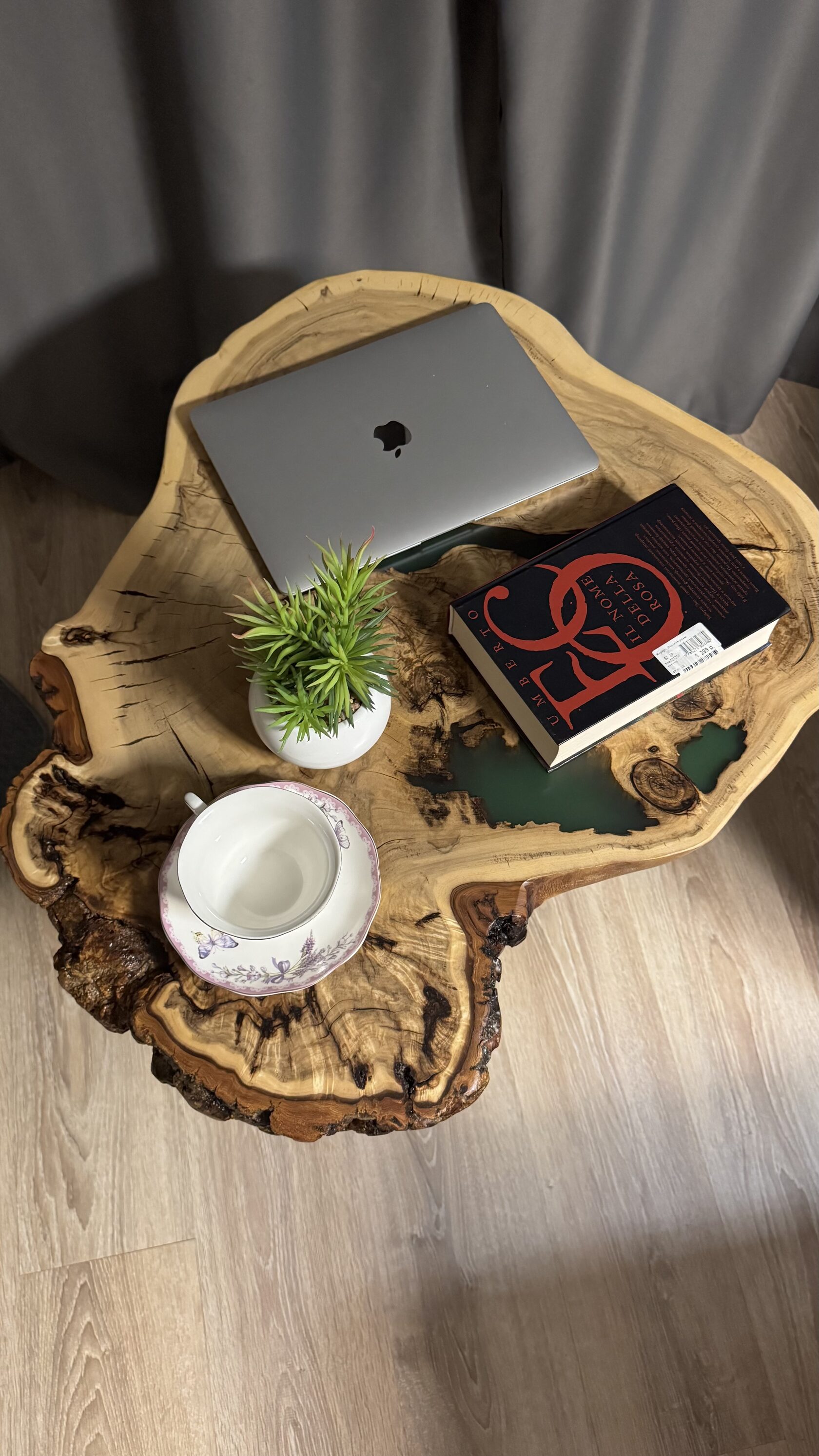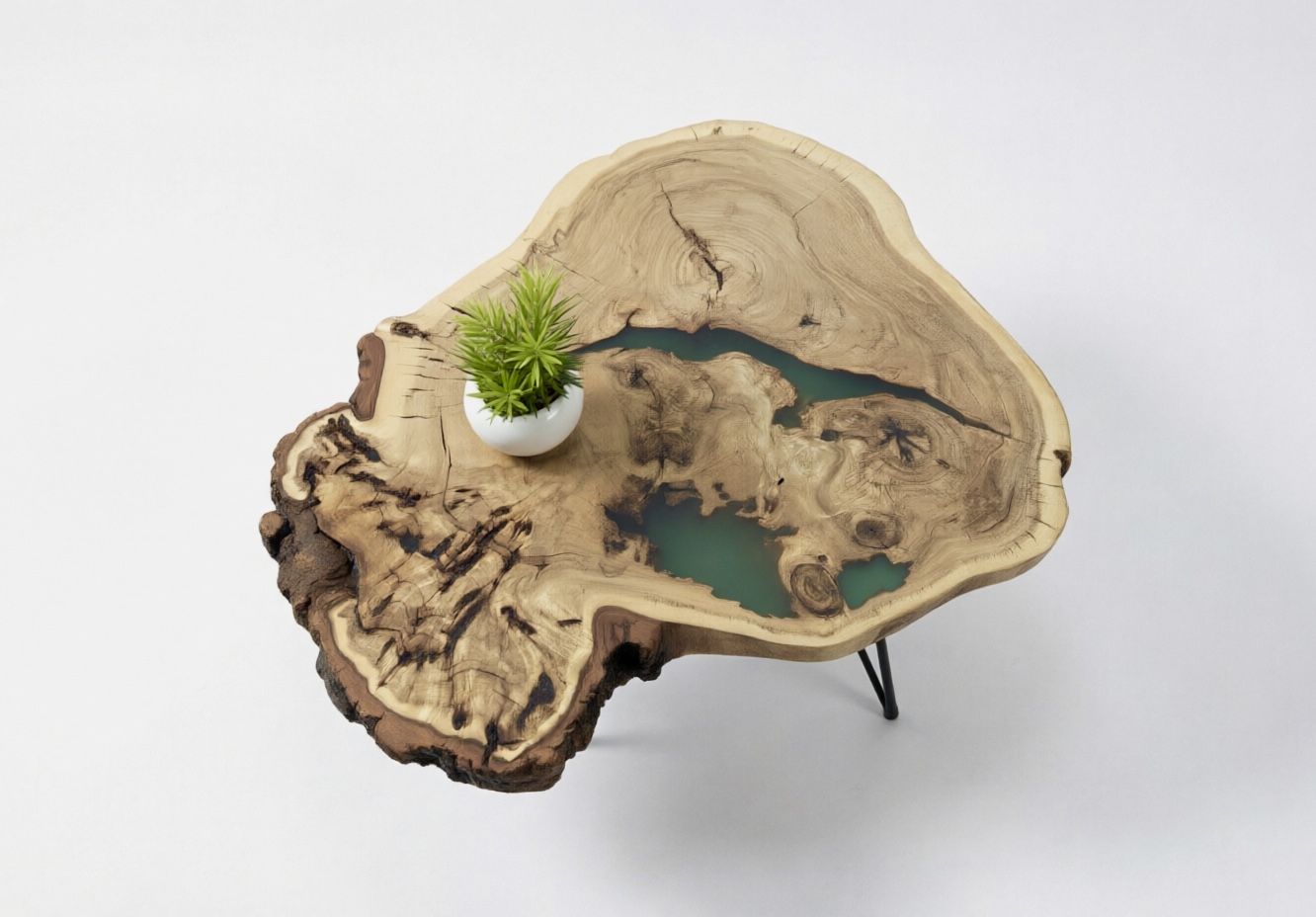 Журнальные столики из массива дерева и эпоксидной смолы в современном минималистичном дизайне